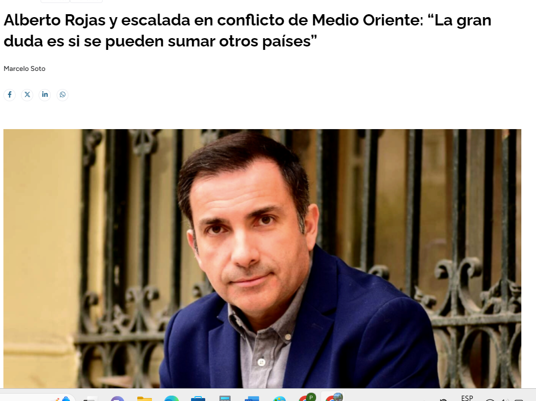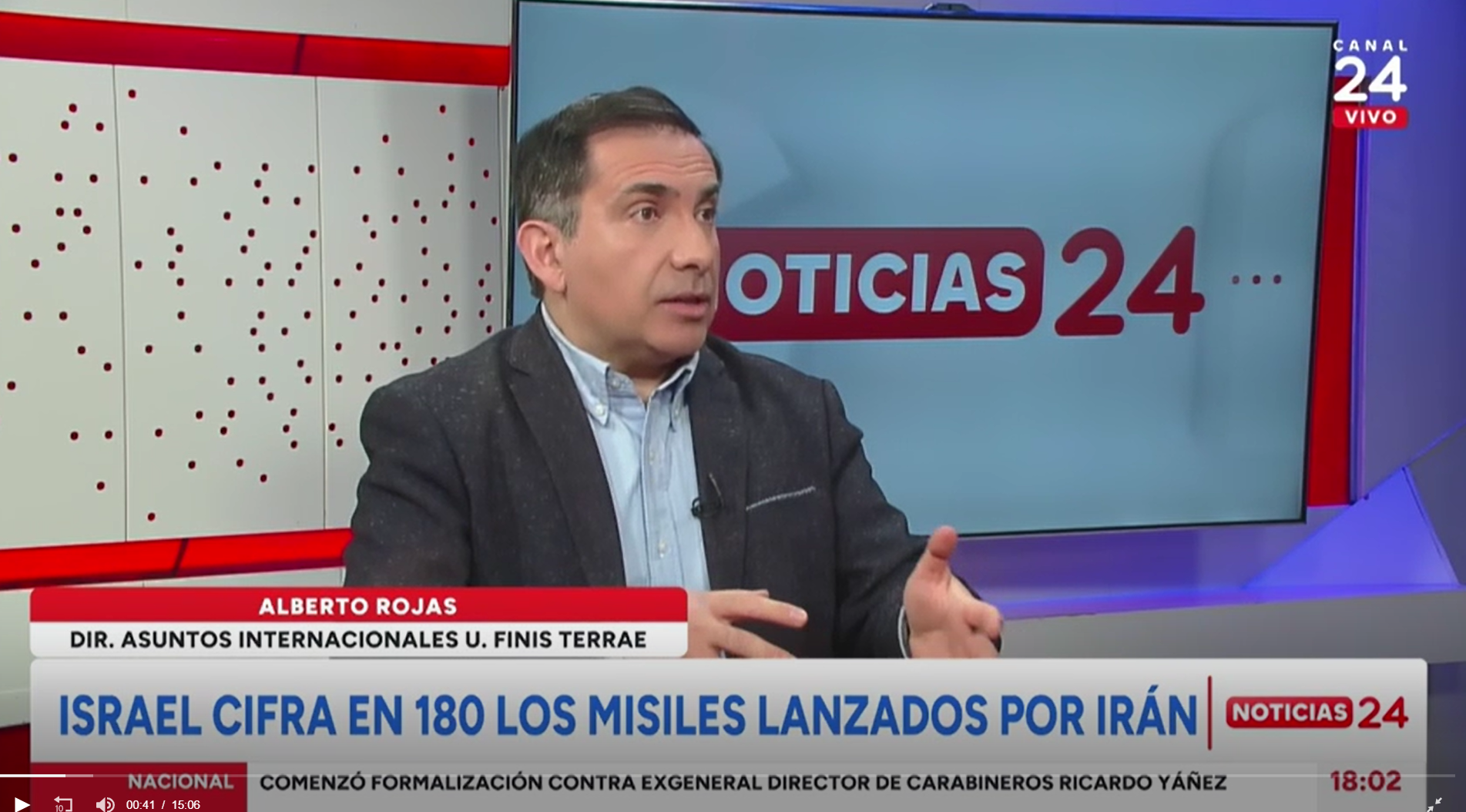 El académico Alberto Rojas fue convocado por los más importantes canales de televisión y radios para examinar las consecuencias del ataque de Irán a Israel, lo que pone en jaque no solo al Medio Oriente, sino a la paz en el mundo.