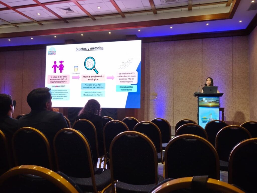 Tapia presentó la ponencia “Metabolitos esteroidales urinarios asociados a la actividad de 11β-HSD2 en hipertensión pediátrica: estudio piloto”, parte de su proyecto SOCHED 2024–2026. En su exposición, dio a conocer los avances obtenidos en una investigación que busca identificar biomarcadores que permitan diferenciar causas secundarias de hipertensión en niños y niñas, mediante la integración de herramientas bioquímicas y moleculares con relevancia clínica.