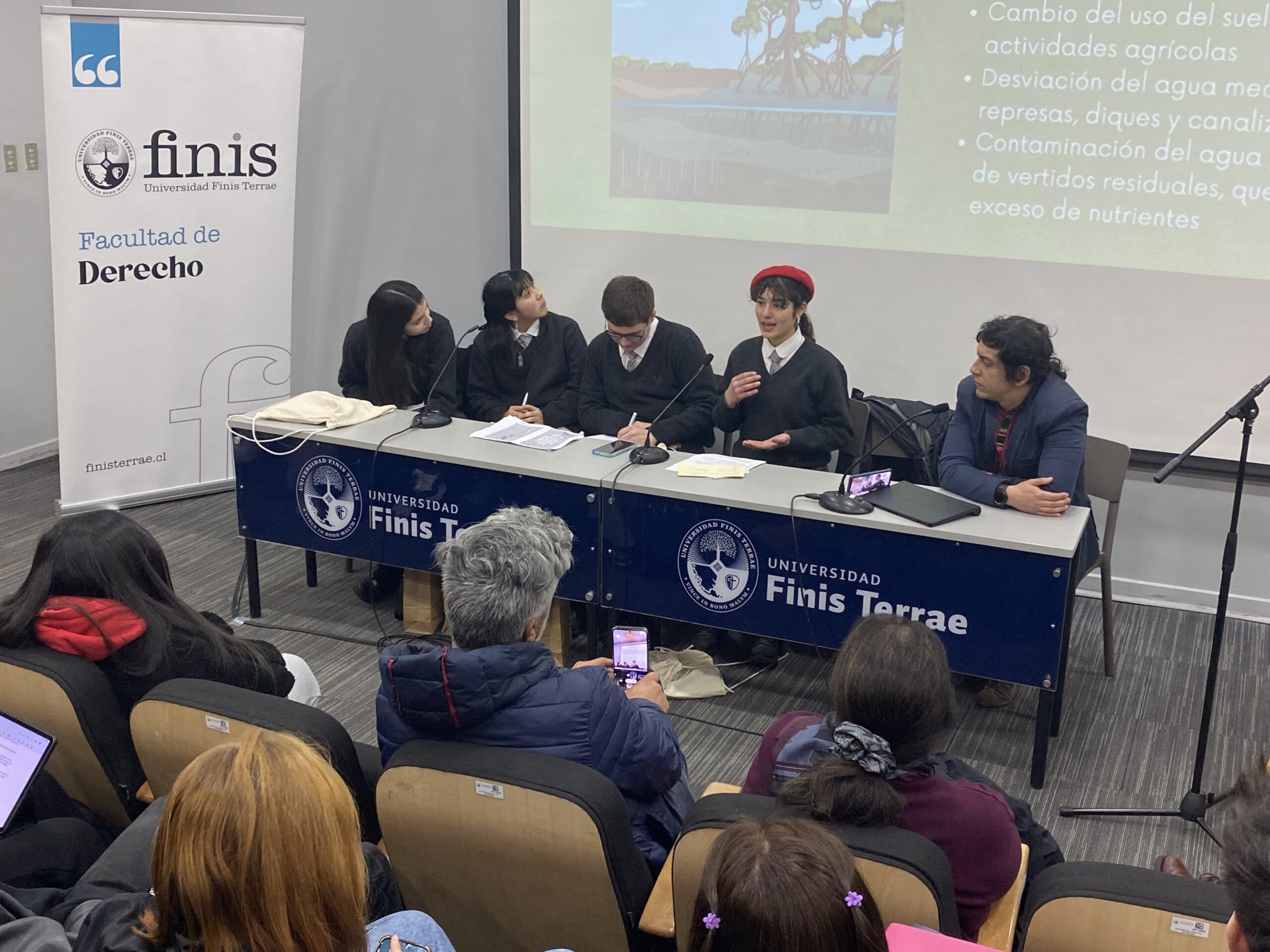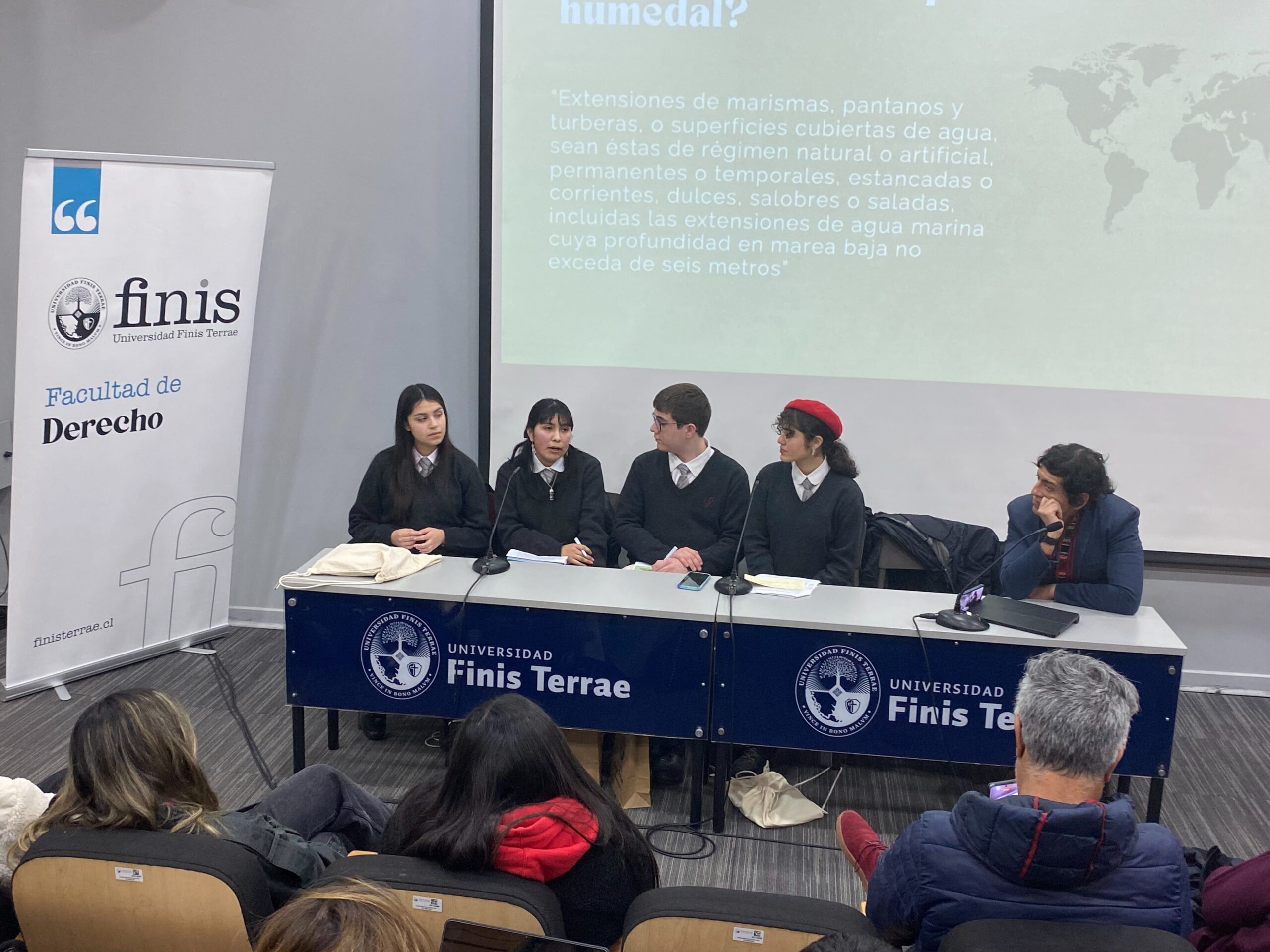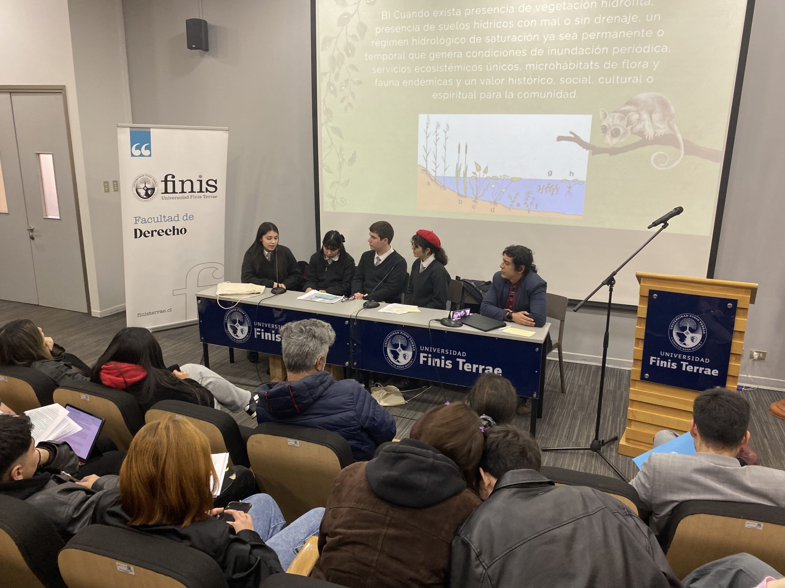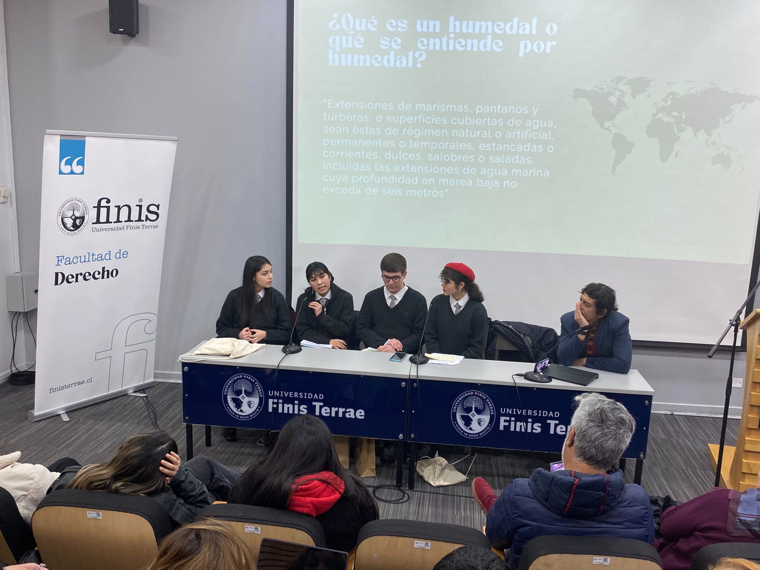La exposición del grupo de debate compuesto por los alumnos del Liceo Pablo Neruda de Temuco, Camila Hernández, Fernanda Paine, Amanda Valenzuela y Camilo Godoy puso un especial énfasis en explicar el alto valor biológico de los humedales como ecosistemas, el valor cultural que estos tienen para las comunidades indígenas, y la importancia para los mismos alumnos expositores, quienes habitan entornos vecinos a los humedales, inspiración inicial de su trabajo, el cual recibió los comentarios de los profesores de nuestra Facultad, María Luisa Baltra y Felipe Pavez.