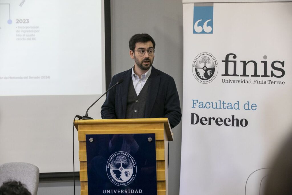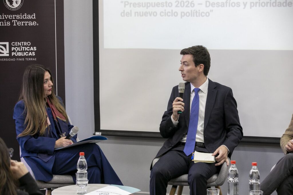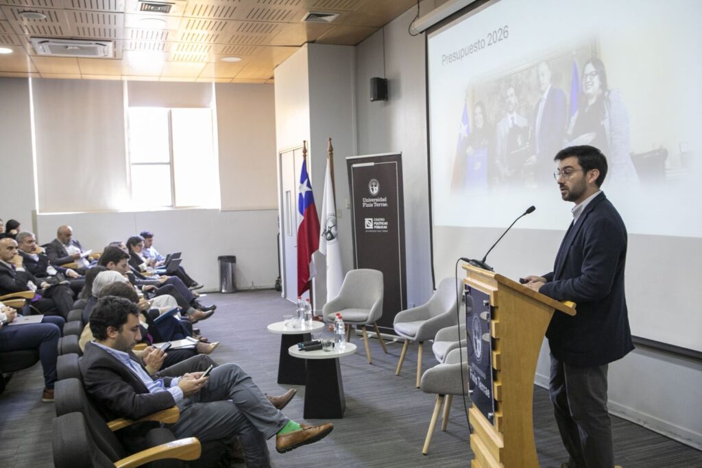 La presentación del profesor de la Facultad de Derecho e investigador del Centro de Estudios Públicos (CEP), Tomás de la Maza Bengoa, sobre los aspectos más relevantes en torno al Presupuesto 2026 y el fuerte debilitamiento de las arcas públicas, recientemente por el Consejo Fiscal Autónomo, dio inicio al conversatorio Presupuesto 2026. Desafíos y prioridades del nuevo ciclo político,  actividad organizada por la Facultad de Derecho de la Universidad Finis Terrae en colaboración con el Centro de Políticas Públicas (CPP) de nuestra casa de estudios.