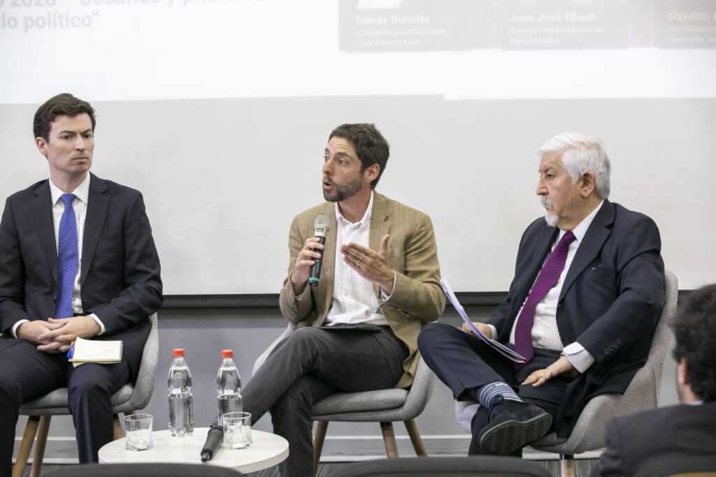 En la instancia, Tomás Bunster, asesor del equipo de José Antonio Kast; Juan José Obach, miembro del equipo económico de Evelyn Matthei; y Osvaldo Rosales, representante del equipo de Jeannette Jara, plantearon sus propuestas para recuperar el crecimiento de “una economía en decadencia” cuyo ritmo “no es suficiente para satisfacer las necesidades de la ciudadanía”, como describió en su primera intervención, el asesor económico del candidato del Partido Republicano.