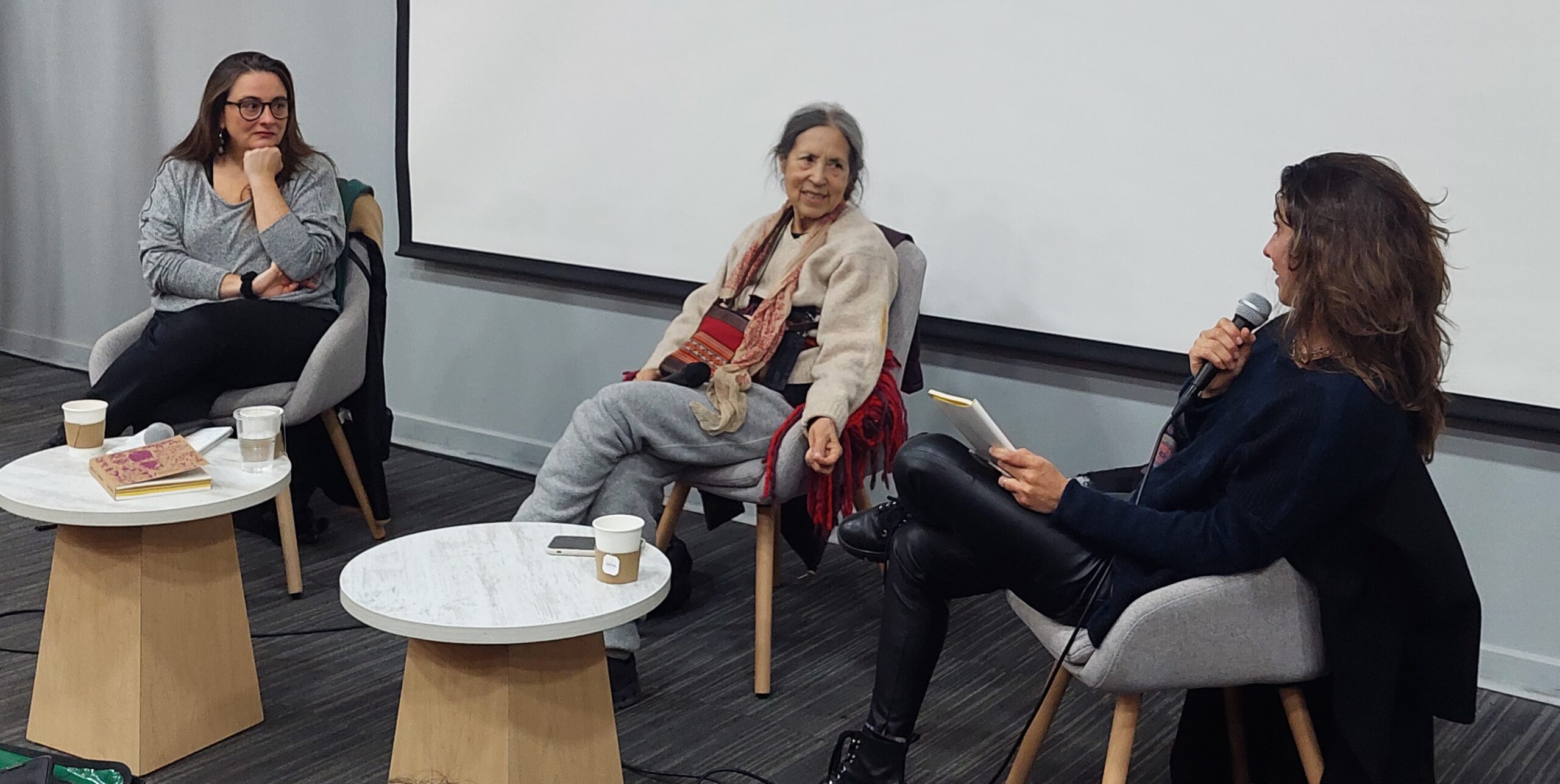 La artista y Premio Nacional de Artes Plásticas 2023, Cecilia Vicuña, compartió con estudiantes y académicos de la Facultad de Artes de la Universidad Finis Terrae. Con ellos, la invitada compartió su proceso creativo y su perspectiva sobre el rol del arte en tiempos de crisis.