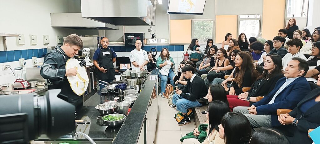 Con la presencia de autoridades, directores, académicos y alumnos, la Universidad Finis Terrae recibió al chef italiano Nicolò Giacometti, quien encabezó una demostración culinaria dedicada a la cocina tradicional de su país. La actividad se desarrolló en la sala demostrativa de nuestra casa de estudios y fue organizada por la Escuela de Dirección y Gestión de Artes Culinarias junto a la Embajada de Italia.