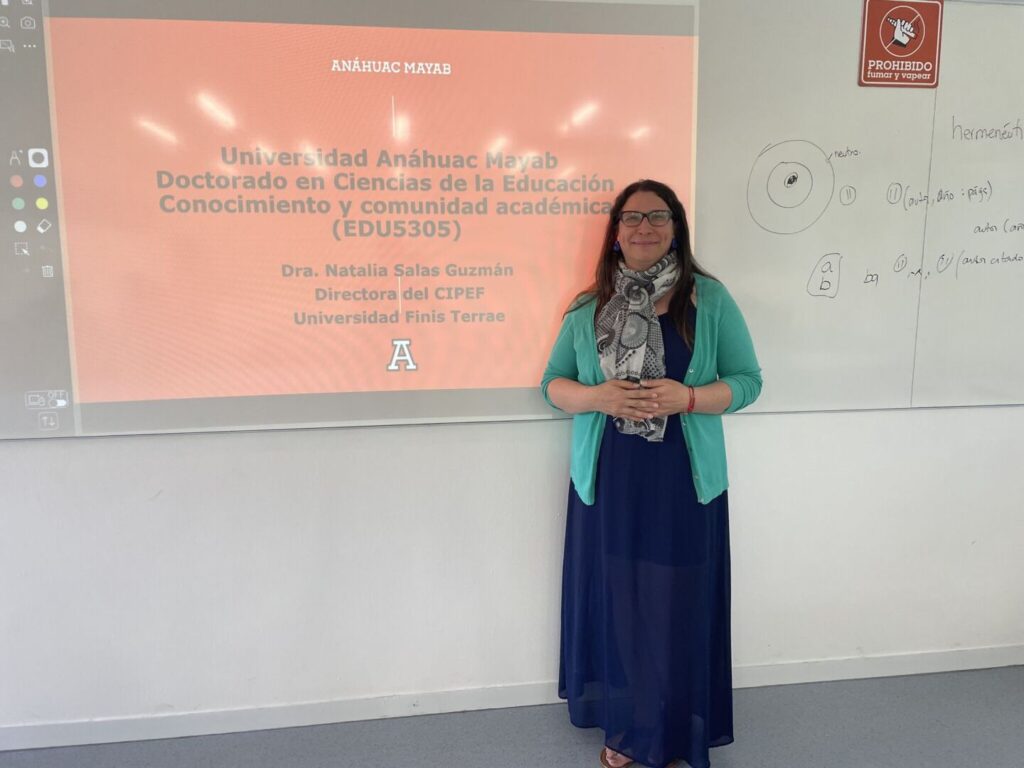 Entre el 2 y el 10 de octubre, la Dra. Natalia Salas Guzmán, directora de Postgrado y Educación Continua y directora del Centro de Investigación en Psicología, Educación y Familia (CIPEF), desarrolló docencia y trabajo académico en la Universidad Anáhuac Mayab, México, como parte del Doctorado en Ciencias de la Educación de dicha casa de estudios.