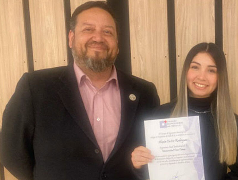 En la ceremonia, la estudiante Alexia Castro, de la carrera de Ingeniería Civil Industrial de la Universidad Finis Terrae, recibió un reconocimiento del Consejo de la Especialidad Industrial por su desempeño académico y los valores que representa.