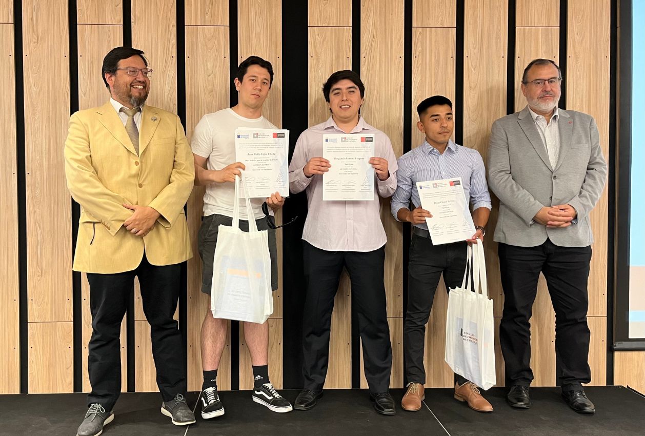 En la ceremonia de premiación, realizada en el Auditorio del Colegio de Ingenieros de Chile, participaron el presidente del Consejo de Especialidad Industrial de la señalada asociación gremial, Rodrigo Escudero y la decana de la Facultad de Ingeniería de la Universidad Finis Terrae, Dra. Angélica Urrutia, además de otros invitados de las instituciones participantes.