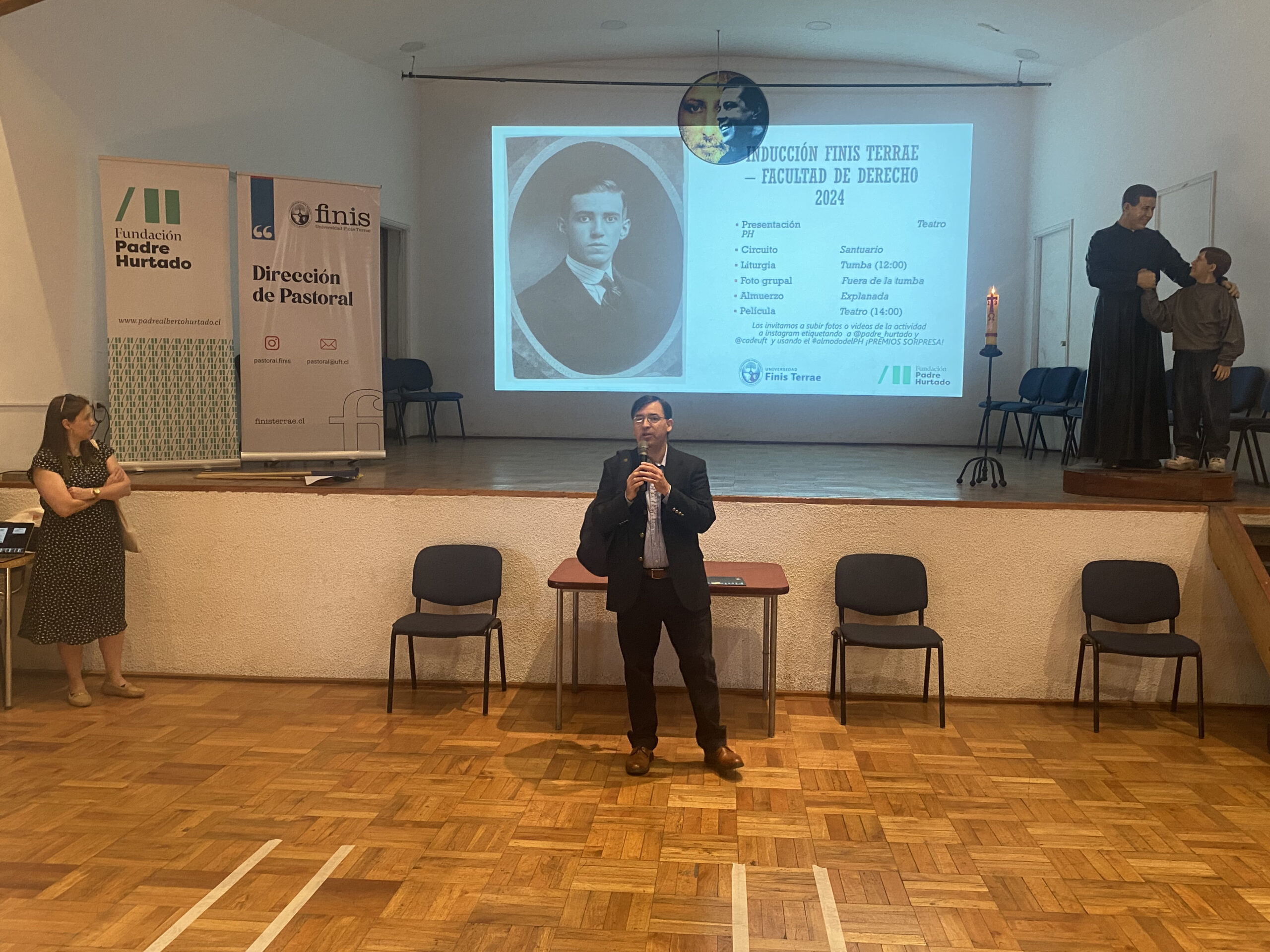 “Como Facultad, esperamos que el espíritu de san Alberto Hurtado los guíe en sus estudios. Recuerden que él, además de un hombre santo, también fue un estudiante de derecho como ustedes. Esperamos que en cinco años más, cuando egresen de nuestra Facultad y se titulen como abogados, trabajen guiados por ese mismo espíritu de servicio a la comunidad, el bien común de nuestro país y el sentido de preocupación y amor por el prójimo”, señaló.