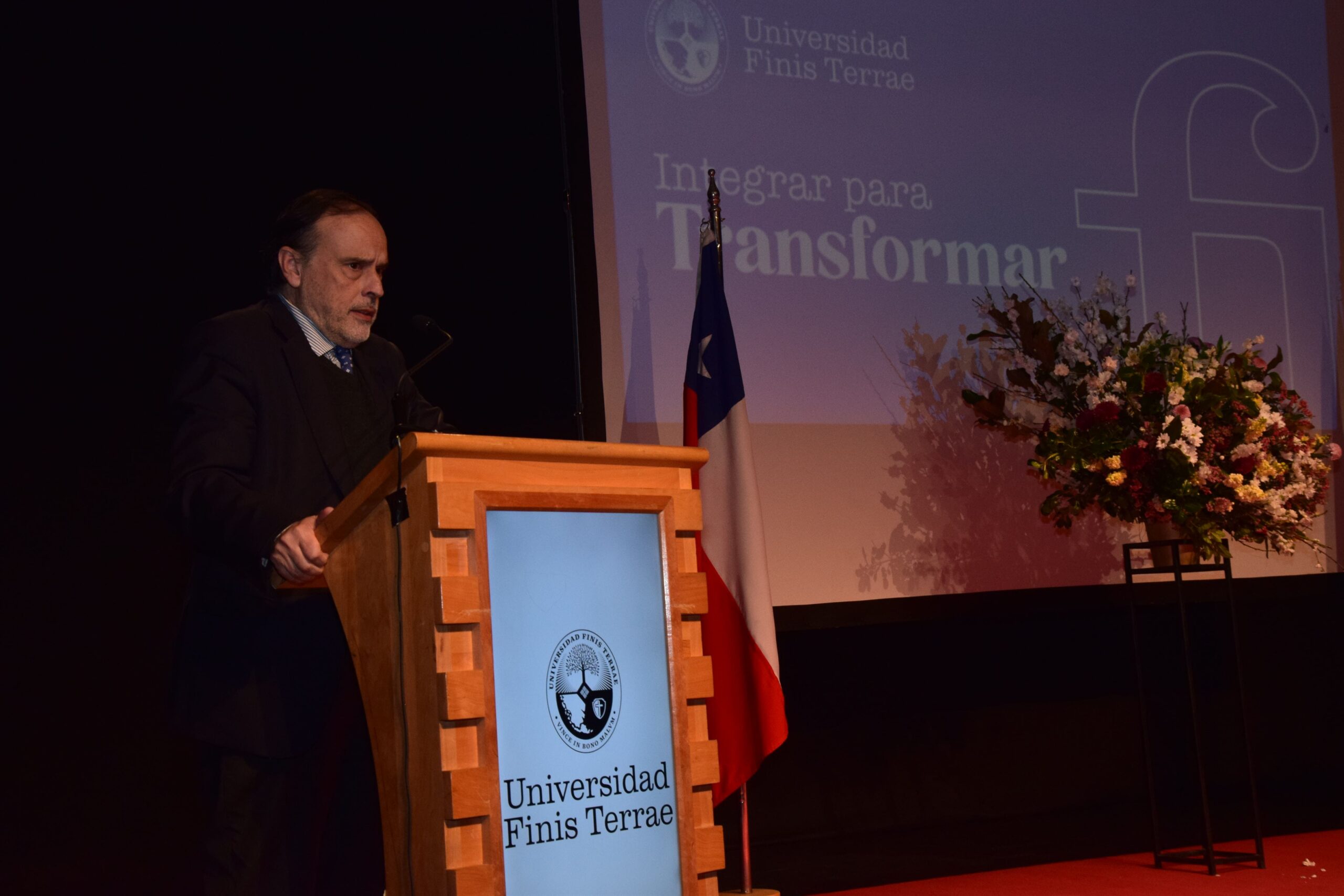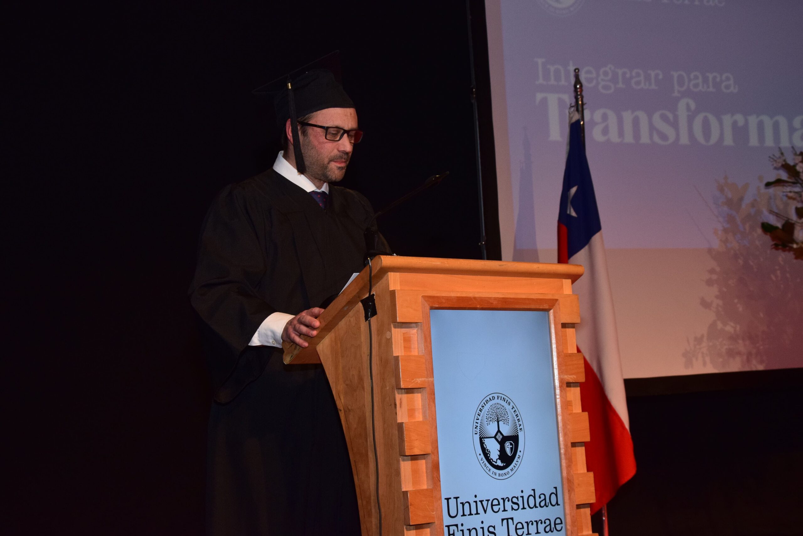 En su discurso, el Dr. Leiva destacó diversos hitos que evidencian el crecimiento que los programas de postgrado de la Facultad de Derecho de la U. Finis Terrae han tenido en años recientes, recordando que con esta ceremonia el Magíster en Derecho Público ya alcanza la decimoquinta generación de titulados, y la quinta para el Magíster en Derecho de los Recursos Naturales y Medio Ambiente, dos programas que “se encuentran homologados por la Academia Judicial desde 2019, certificación de la institución que forma y capacita a nuestros jueces de la República, lo que reconoce la seriedad y calidad de nuestros postgrados”.
