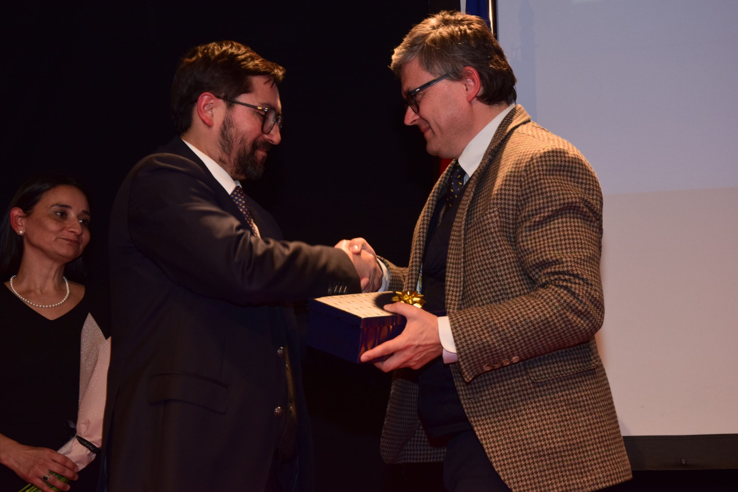“Don Andrés Ríos siempre destacaba en su discurso inaugural que los grandes maestros, las grandes obras y los muy buenos alumnos hacen una gran diferencia en una universidad. Y sin duda que Rodrigo cumplió con esas condiciones. (…) Un buen maestro hace una diferencia decía nuestra poetisa Gabriela Mistral, más citada que leída hoy. Sin duda que Rodrigo representa valores fundamentales que un buen docente y un buen abogado debe tener, pero por sobre todo, y esto es lo más importante, representa un ejemplo de una gran persona”, señaló en su alocución en honor al profesor Pica, el director académico del Magíster en Derecho Público, Enrique Navarro, antes de la entrega de un galardón conmemorativo a la viuda del profesor Pica, Francisca Winkler.