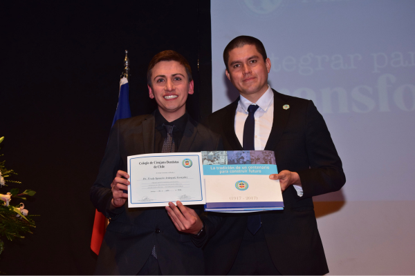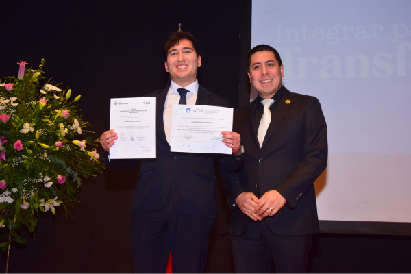 Premio IADR: este premio se otorga con el objetivo de incentivar y apoyar a los nuevos profesionales que demuestran un notable interés y dedicación hacia la investigación odontológica, abarcando todas sus áreas en el campo de la odontología. La IADR División Chile reconoce la importancia de seguir construyendo conocimiento y avanzando en el campo de la salud oral, y considera fundamental el rol de los nuevos cirujanos dentistas en este proceso. El premio fue recibido por el Dr. Ángel Alfredo Hurtado Delgado,y entregado por el Dr. Jaime Díaz Zuñiga, presidente de la IADR, División Chilena.