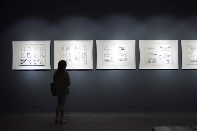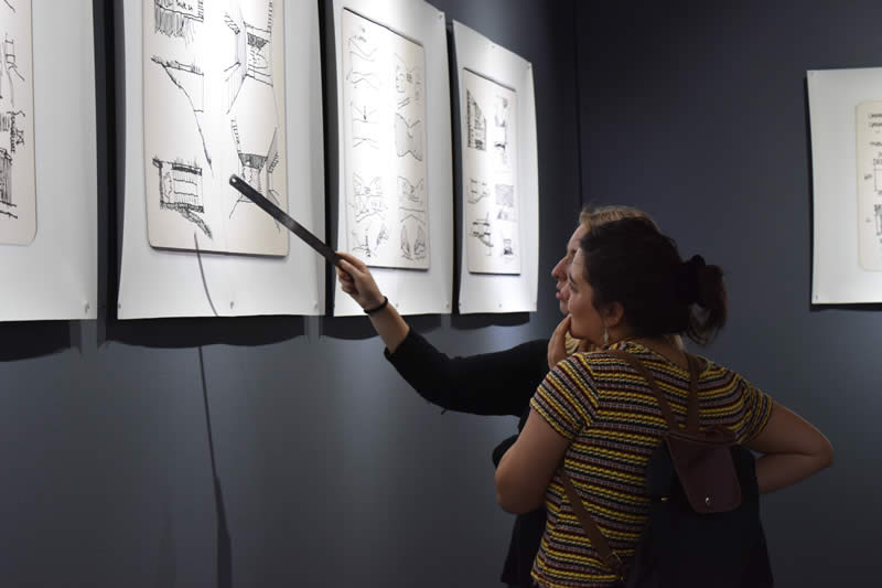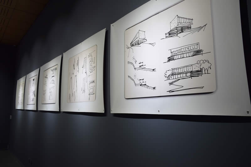 Esta mirada interpretativa del territorio se complementa con la exhibición de los croquis que han sido parte del proceso creativo de sus obras en Chile.