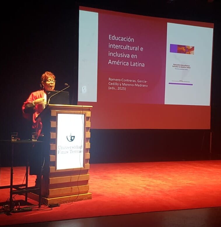 Durante su intervención, la doctora Romero presentó su reciente publicación: Educación intercultural e inclusiva en América Latina: trayectorias, perspectivas y desafíos, distribuida gratuitamente en formato digital a las y los asistentes. “El libro ofrece una concepción amplia de inclusión e interculturalidad, incorporando enfoques como la justicia epistémica y el reconocimiento de la diversidad invisible en el aula”, señaló.