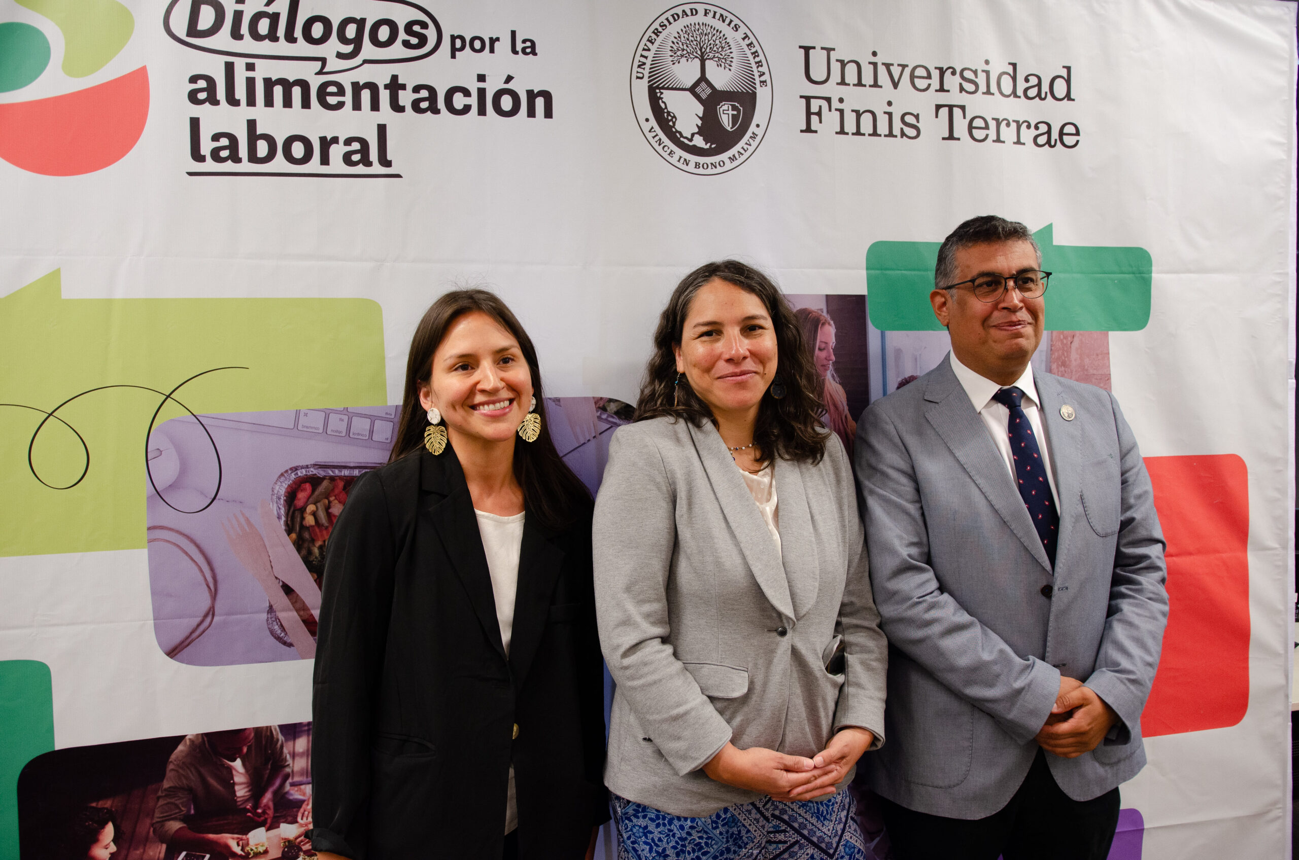 - De izquierda a derecha: María Francesca Conti, nutricionista coordinadora Mesa “Diálogos por la alimentación laboral”, U. Finis Terrae; Camila Silva, Jefa división de Políticas Públicas, Ministerio de Salud; Oscar Castillo, director Escuela de Nutrición y Dietética U. Finis Terrae.