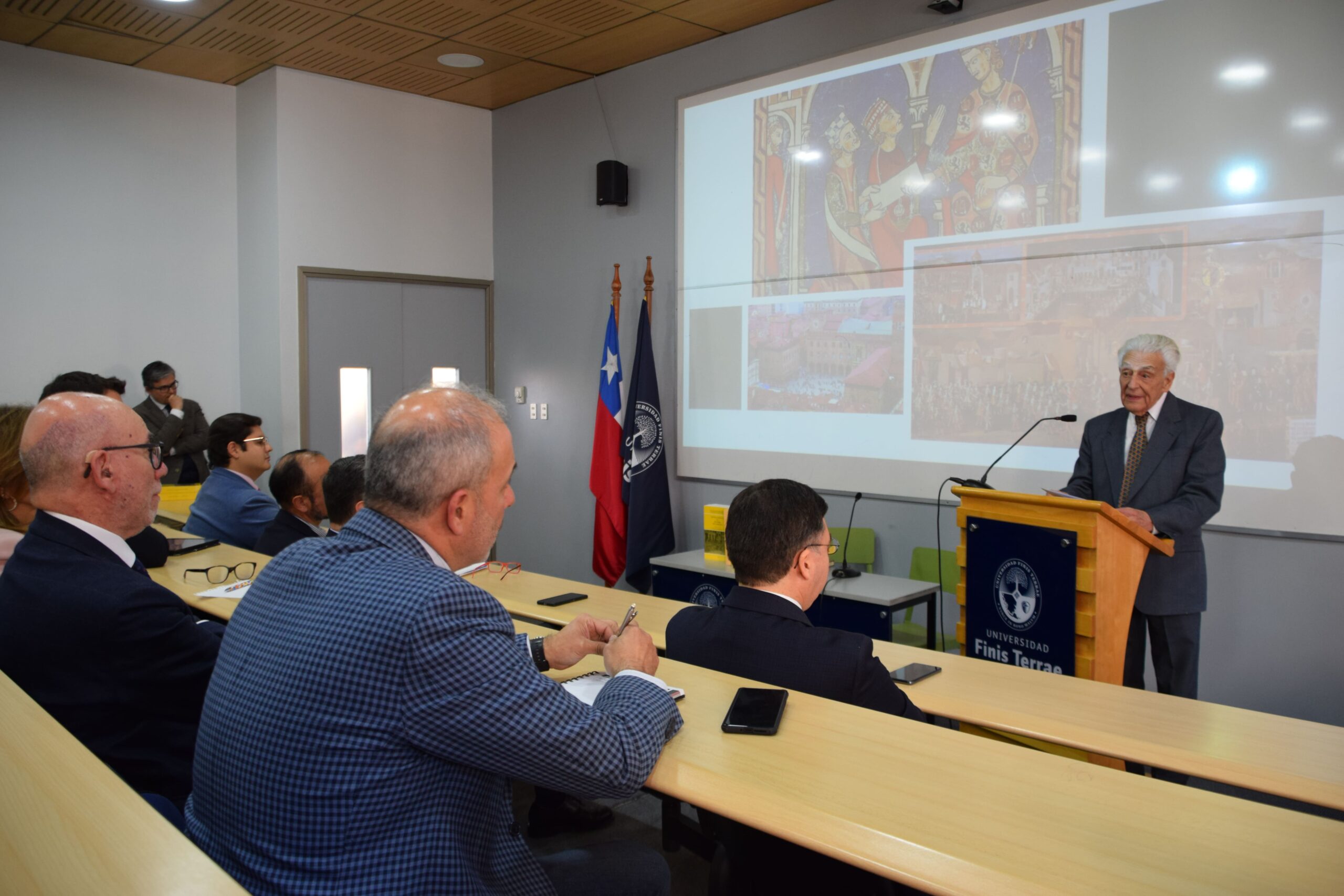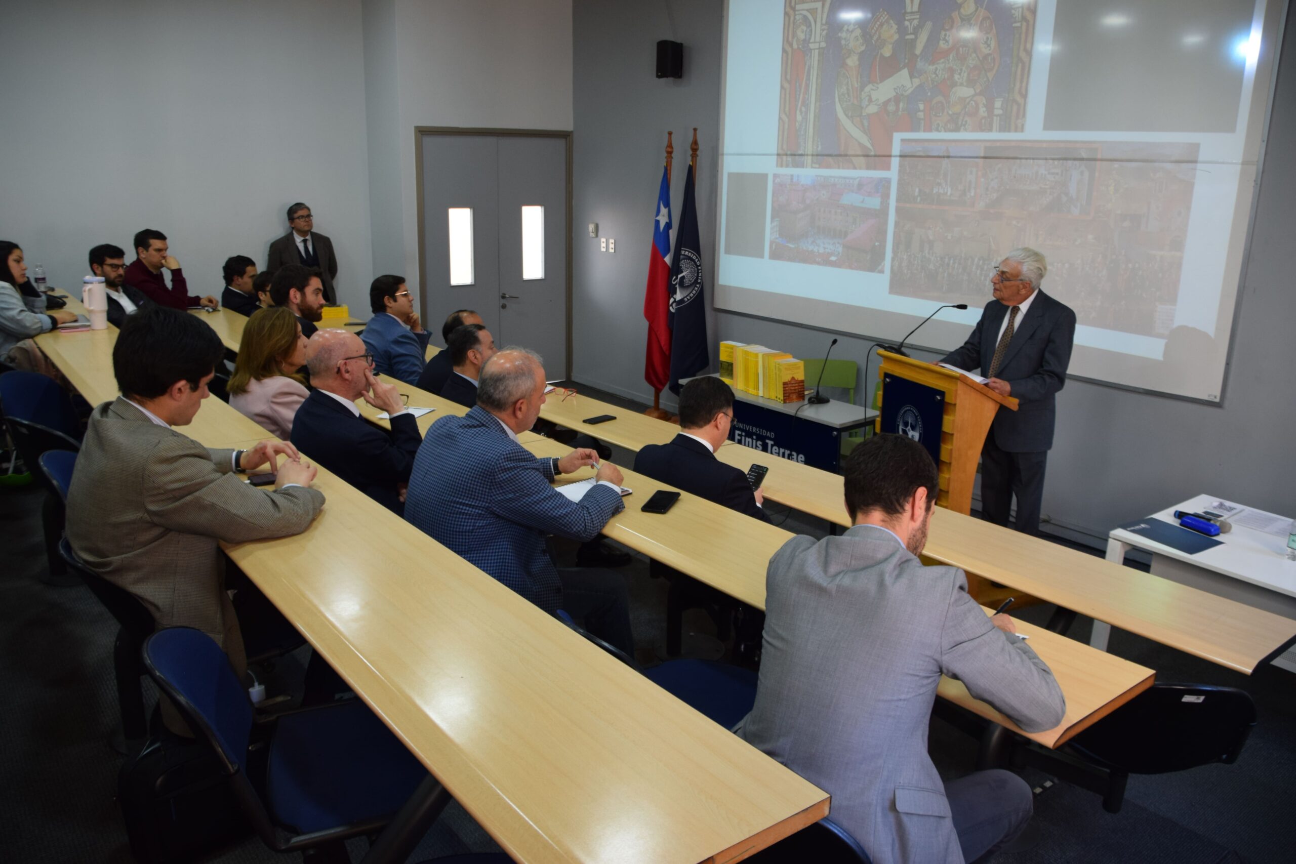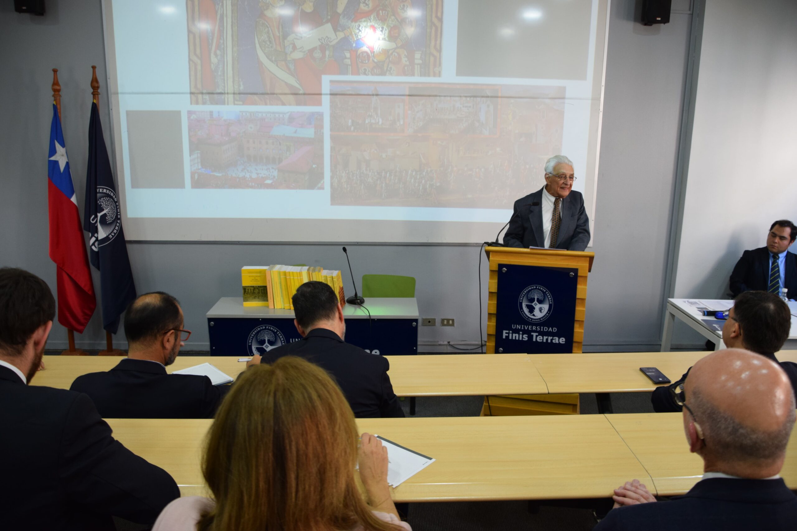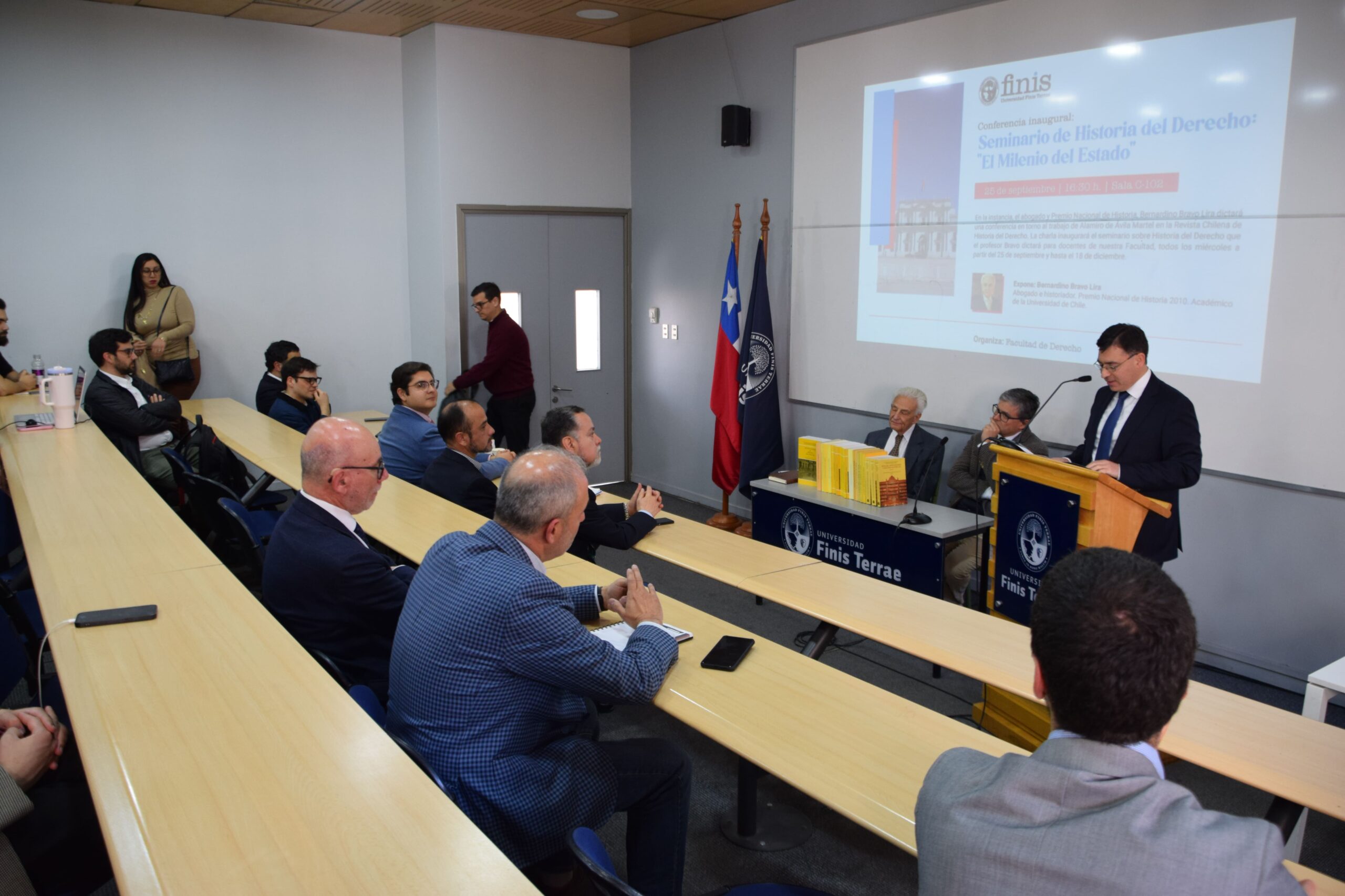 Con un repaso por la extensa trayectoria del historiador y jurista Bernardino Bravo, académico que entre otros reconocimientos ha recibido la Orden Andrés Bello de Venezuela en 1985, el Premio Internacional de Historia del Derecho Indiano Ricardo Levene por su obra «Derecho común y derecho propio en el Nuevo Mundo» en 1990 y el Premio Nacional de Historia en 2010; el director de la Escuela de Derecho de la Universidad Finis Terrae, Marco Antonio Navarro inauguró el seminario de Historia del Derecho “El Milenio del Estado”, que el profesor Bravo dictará para docentes de nuestra Facultad durante tres meses.
