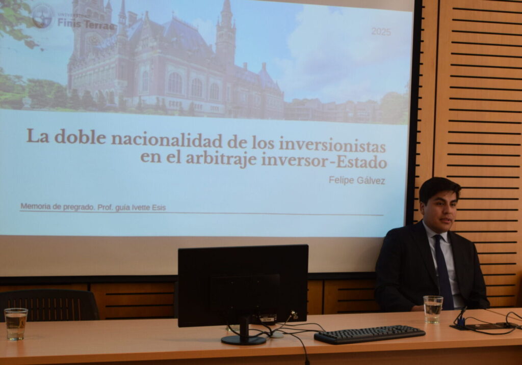 El alumno de nuestra Facultad, Felipe Gálvez Torres, decidió investigar la problemática que presentan los inversores con doble nacionalidad en los temas de arbitraje inversor-Estado para su memoria de grado, motivado por su curiosidad en torno al proceso de inserción internacional de Chile y la importancia de los tratados internacionales en dicho desarrollo. Un interés surgido luego de asistir al seminario Revisión de laudos arbitrales 2023: 5º Encuentro Anual realizado en nuestra Facultad a mediados del año pasado, el alumno de la Facultad de Derecho de la U. Finis Terrae.