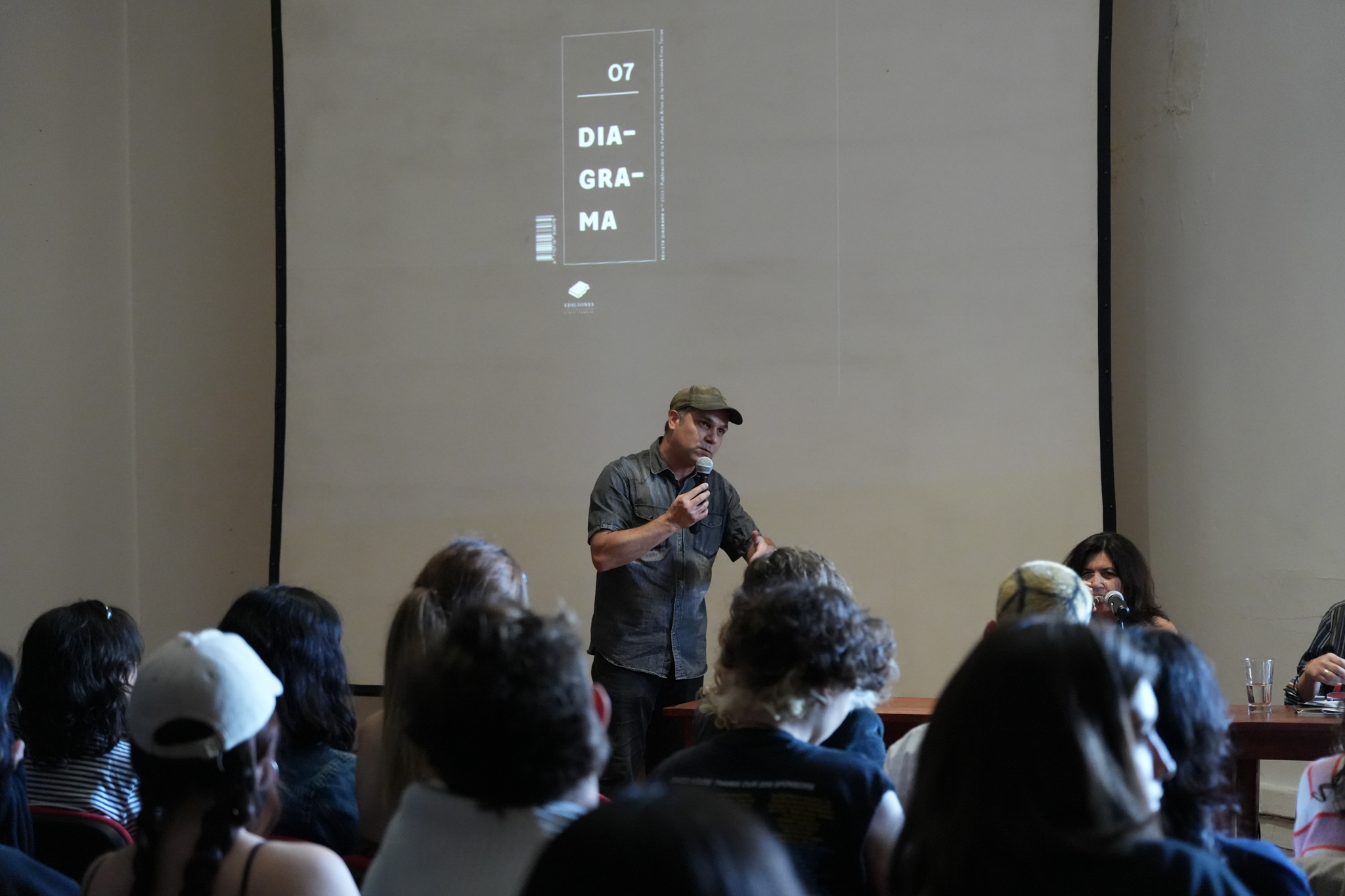 Barría ofreció una reflexión sobre el contenido de la revista, destacando la organización «heterocrónica» de los textos, que exploran la violencia desde distintas perspectivas, tanto políticas como sociales. El dramaturgo se detuvo especialmente en los artículos de Maria Grazia Muscatello sobre la participación chilena en la Bienal de Venecia de 1973 y destacó las entrevistas a las artistas escénicas Alexandra von Hummel y Stephie Bastías como contrapunto generacional sobre las precariedades y desafíos del teatro nacional.