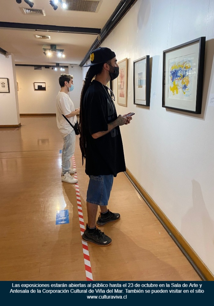 Las exposiciones “Eduardo Vilches, Premio Nacional de Artes Plásticas 2019”, “Guillermo Frommer, un Homenaje Pendiente” y “Matriz” estarán abiertas al público hasta el 23 de octubre en la Sala de Arte y Antesala de la Corporación Cultural de Viña del Mar. También se pueden visitar en el sitio www.culturaviva.cl